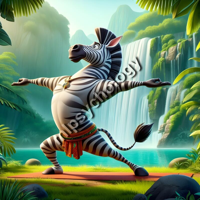 A Zebra working on some self-care by participating in Yoga