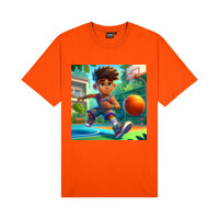 Let your little one show off their love for basketball with this vibrant t-shirt. Featuring an energetic illustration of a boy dribbling and shooting hoops outdoors, this shirt captures the excitement and passion of the game. Perfect for young basketball enthusiasts who dream of becoming the next big star!