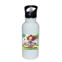 600ml Stainless Steel Water Bottle with Straw Top - White