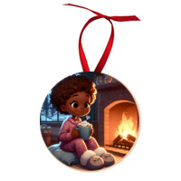 Add a touch of nostalgia to your holiday decor with this enchanting Christmas ornament. Featuring a young girl nestled by a crackling fireplace, this piece evokes the cozy warmth of Christmas Eve. Her face glows with happiness as she enjoys a hot cocoa, surrounded by the soft, flickering light of the fire. The meticulous craftsmanship captures every detail, making this ornament a stunning tribute to the cherished traditions and quiet moments of the season.